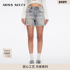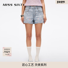 【天使系列】Miss Sixty25春秋新款牛仔短裤女重工低腰直筒裤