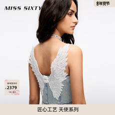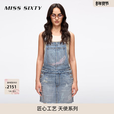 【天使系列】Miss Sixty25夏新款背带牛仔连身连衣裙女涂鸦风钉珠
