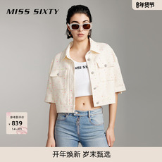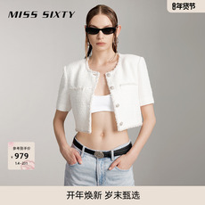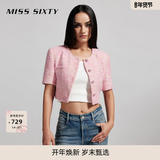 Miss Sixty小香风花呢短袖外套女钻饰单排扣法式高级感甜酷短款