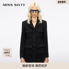 Miss Sixty2025秋季新款呢料外套女羊毛混纺翻驳领小香风口袋气质