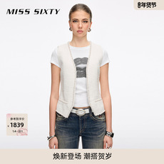 Miss Sixty2026春季新款呢料马甲女重工珍珠花式呢静奢小香风短款