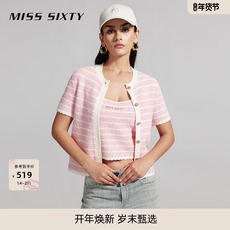 Miss Sixty圆领短袖针织衫外套法式小香风撞色条纹甜美气质毛衣