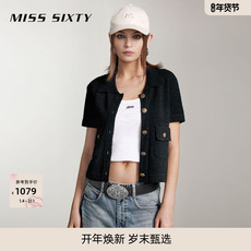 Miss Sixty针织外套女翻领静奢气质小香风短袖优雅短款上衣开衫