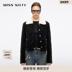 Miss Sixty2025冬季新款夹棉外套女丝绒圆领重工钉珠静奢小香风