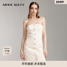 Miss Sixty法式小香风花呢抹胸连身连衣裙钻饰纽扣短裙气质
